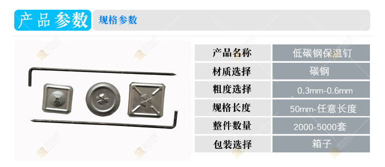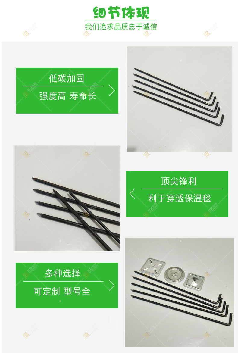 并且由機(jī)械生產(chǎn)的保溫鉤釘,規(guī)格尺寸保持了一致性,保證了施工時(shí)的方便與美觀。